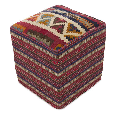 Les poufs sont fabriqués dans le sud de la Perse. Ils sont fabriqués à partir de tapis Kelim qui ont entre 20 et 50 ans. Les tapis Kelim utilisés pour les poufs sont tissés à la main avec une technique de tissage spéciale, qui donne aux tapis une qualité plus fine, semblable à celle du feutre. Des poufs ronds et carrés sont disponibles et sont entièrement uniques. Les poufs sont colorés naturellement.