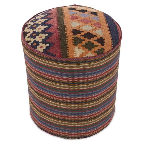 Les poufs sont fabriqués dans le sud de la Perse. Ils sont fabriqués à partir de tapis Kelim qui ont entre 20 et 50 ans. Les tapis Kelim utilisés pour les poufs sont tissés à la main avec une technique de tissage spéciale, qui donne aux tapis une qualité plus fine, semblable à celle du feutre. Des poufs ronds et carrés sont disponibles et sont entièrement uniques. Les poufs sont colorés naturellement.