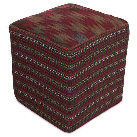 Les poufs sont fabriqués dans le sud de la Perse. Ils sont fabriqués à partir de tapis Kelim qui ont entre 20 et 50 ans. Les tapis Kelim utilisés pour les poufs sont tissés à la main avec une technique de tissage spéciale, qui donne aux tapis une qualité plus fine, semblable à celle du feutre. Des poufs ronds et carrés sont disponibles et sont entièrement uniques. Les poufs sont colorés naturellement.