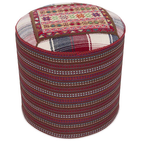 Les poufs sont fabriqués dans le sud de la Perse. Ils sont fabriqués à partir de tapis Kelim qui ont entre 20 et 50 ans. Les tapis Kelim utilisés pour les poufs sont tissés à la main avec une technique de tissage spéciale, qui donne aux tapis une qualité plus fine, semblable à celle du feutre. Des poufs ronds et carrés sont disponibles et sont entièrement uniques. Les poufs sont colorés naturellement.