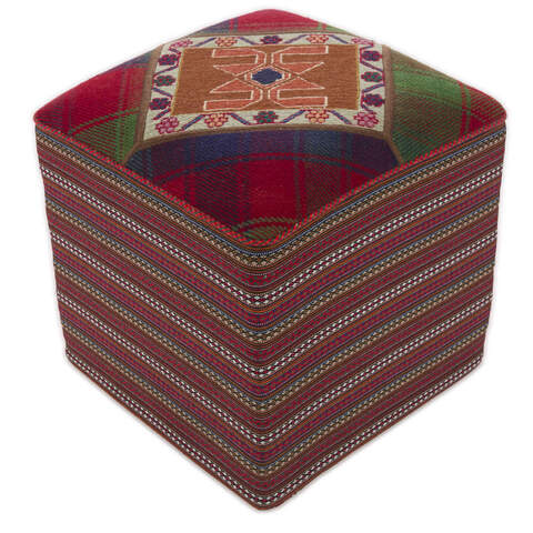 Les poufs sont fabriqués dans le sud de la Perse. Ils sont fabriqués à partir de tapis Kelim qui ont entre 20 et 50 ans. Les tapis Kelim utilisés pour les poufs sont tissés à la main avec une technique de tissage spéciale, qui donne aux tapis une qualité plus fine, semblable à celle du feutre. Des poufs ronds et carrés sont disponibles et sont entièrement uniques. Les poufs sont colorés naturellement.