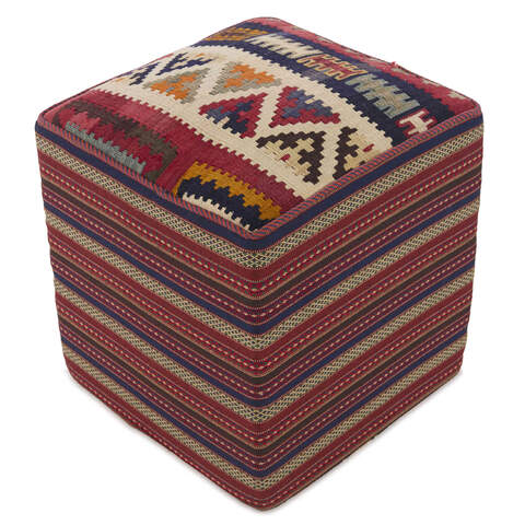 Les poufs sont fabriqués dans le sud de la Perse. Ils sont fabriqués à partir de tapis Kelim qui ont entre 20 et 50 ans. Les tapis Kelim utilisés pour les poufs sont tissés à la main avec une technique de tissage spéciale, qui donne aux tapis une qualité plus fine, semblable à celle du feutre. Des poufs ronds et carrés sont disponibles et sont entièrement uniques. Les poufs sont colorés naturellement.