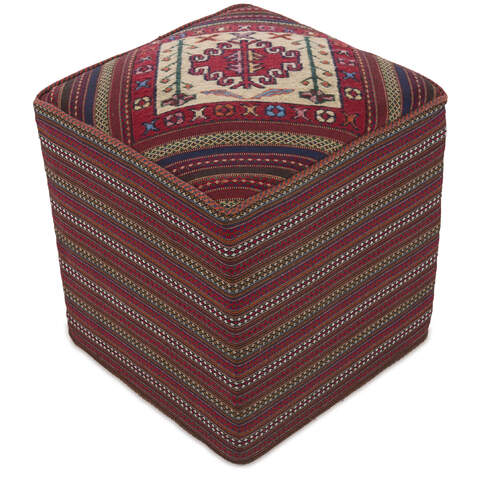 Les poufs sont fabriqués dans le sud de la Perse. Ils sont fabriqués à partir de tapis Kelim qui ont entre 20 et 50 ans. Les tapis Kelim utilisés pour les poufs sont tissés à la main avec une technique de tissage spéciale, qui donne aux tapis une qualité plus fine, semblable à celle du feutre. Des poufs ronds et carrés sont disponibles et sont entièrement uniques. Les poufs sont colorés naturellement.