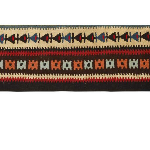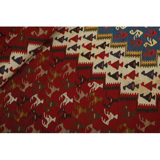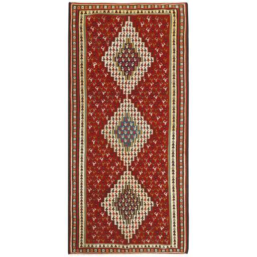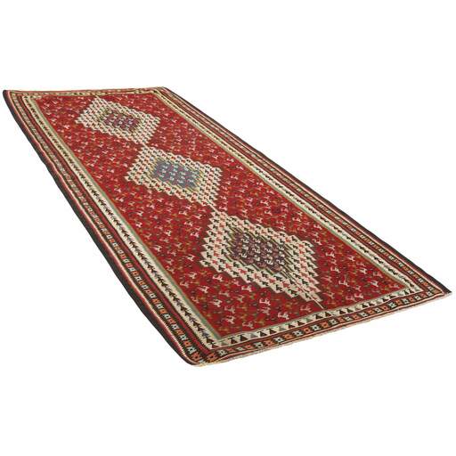Ces kilims sont des tapis tissés à plat, tissés par les nomades de l'ouest de la Perse. Une technique de tissage spéciale est utilisée, ce qui donne au tapis une surface plus fine et plus plate, sans poils. Les kilims sont également plus rapides à produire que les tapis orientaux courants. Les couleurs sont naturelles et aucun tapis ne se ressemble. Les kilims sont produits dans plusieurs régions et sous de nombreux noms, mais les types de kilim les plus connus sont Seneh, Sumak, Fars et Kelim Gashghai.