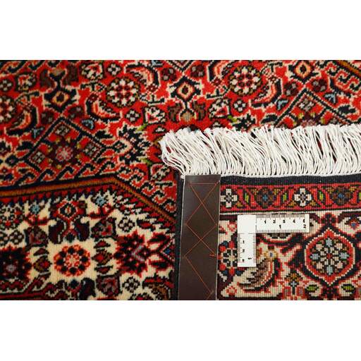Bidjar is een stad met ongeveer 50.000 inwoners in de noordwestelijke provincie Koerdistan. Het ligt in een vruchtbare vallei, omringd door dorre bergen, en er zijn geen belangrijke monumenten. De stad dient voornamelijk als marktcentrum voor de omliggende dorpen. De recente geschiedenis is dramatisch, aangezien de stad eerst door de Russen en vervolgens door de Turken werd bezet tijdens de Eerste Wereldoorlog, wat leidde tot een hongersnood die de bevolking aanzienlijk deed afnemen. Deze gebeurtenissen worden weerspiegeld in de tapijtproductie van de stad. Voor de Eerste Wereldoorlog werden de tapijten grof maar stevig geknoopt, met wollen schering en inslag. Later werden ze fijner en hadden ze katoenen bases. De Bidjar-patronen zijn vaak Herati, maar soms is een Mahi-patroon te zien. De kleuren zijn meestal helderrood met een lichte rand. De Bidjar-tapijten zijn zo stevig geknoopt dat u het risico loopt de knopen te breken als u ze samenvouwt met de pool naar binnen. Bij het vouwen van Bidjar-tapijten gebeurt dit daarom altijd met de pool naar buiten. Je voelt duidelijk dat er veel meer wol in een Bidjar-kleed zit dan in de meeste andere kleden. Ze voelen een stuk zwaarder aan en ze zijn minder makkelijk te verplaatsen als ze op de grond liggen.