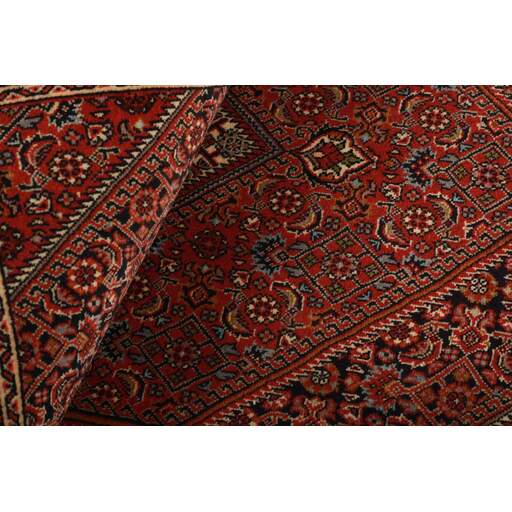 Bidjar is een stad met ongeveer 50.000 inwoners in de noordwestelijke provincie Koerdistan. Het ligt in een vruchtbare vallei, omringd door dorre bergen, en er zijn geen belangrijke monumenten. De stad dient voornamelijk als marktcentrum voor de omliggende dorpen. De recente geschiedenis is dramatisch, aangezien de stad eerst door de Russen en vervolgens door de Turken werd bezet tijdens de Eerste Wereldoorlog, wat leidde tot een hongersnood die de bevolking aanzienlijk deed afnemen. Deze gebeurtenissen worden weerspiegeld in de tapijtproductie van de stad. Voor de Eerste Wereldoorlog werden de tapijten grof maar stevig geknoopt, met wollen schering en inslag. Later werden ze fijner en hadden ze katoenen bases. De Bidjar-patronen zijn vaak Herati, maar soms is een Mahi-patroon te zien. De kleuren zijn meestal helderrood met een lichte rand. De Bidjar-tapijten zijn zo stevig geknoopt dat u het risico loopt de knopen te breken als u ze samenvouwt met de pool naar binnen. Bij het vouwen van Bidjar-tapijten gebeurt dit daarom altijd met de pool naar buiten. Je voelt duidelijk dat er veel meer wol in een Bidjar-kleed zit dan in de meeste andere kleden. Ze voelen een stuk zwaarder aan en ze zijn minder makkelijk te verplaatsen als ze op de grond liggen.