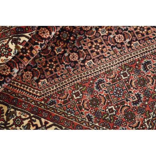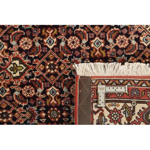 Bidjar is een stad met ongeveer 50.000 inwoners in de noordwestelijke provincie Koerdistan. Het ligt in een vruchtbare vallei, omringd door dorre bergen, en er zijn geen belangrijke monumenten. De stad dient voornamelijk als marktcentrum voor de omliggende dorpen. De recente geschiedenis is dramatisch, aangezien de stad eerst door de Russen en vervolgens door de Turken werd bezet tijdens de Eerste Wereldoorlog, wat leidde tot een hongersnood die de bevolking aanzienlijk deed afnemen. Deze gebeurtenissen worden weerspiegeld in de tapijtproductie van de stad. Voor de Eerste Wereldoorlog werden de tapijten grof maar stevig geknoopt, met wollen schering en inslag. Later werden ze fijner en hadden ze katoenen bases. De Bidjar-patronen zijn vaak Herati, maar soms is een Mahi-patroon te zien. De kleuren zijn meestal helderrood met een lichte rand. De Bidjar-tapijten zijn zo stevig geknoopt dat u het risico loopt de knopen te breken als u ze samenvouwt met de pool naar binnen. Bij het vouwen van Bidjar-tapijten gebeurt dit daarom altijd met de pool naar buiten. Je voelt duidelijk dat er veel meer wol in een Bidjar-kleed zit dan in de meeste andere kleden. Ze voelen een stuk zwaarder aan en ze zijn minder makkelijk te verplaatsen als ze op de grond liggen.