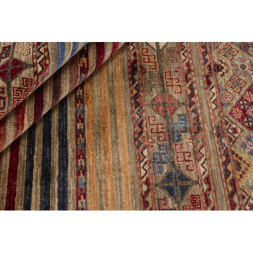 Les tapis de la collection Shall sont noués à la main par des Turkmènes dans le nord de l'Afghanistan. Ils sont fabriqués à 100 % en laine, noués avec la laine la plus fine des moutons des hautes terres. Les tapis sont très résistants et sont, en termes de qualité, les meilleurs tapis afghans disponibles.