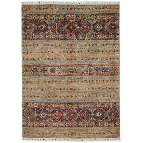 Les tapis de la collection Shall sont noués à la main par des Turkmènes dans le nord de l'Afghanistan. Ils sont fabriqués à 100 % en laine, noués avec la laine la plus fine des moutons des hautes terres. Les tapis sont très résistants et sont, en termes de qualité, les meilleurs tapis afghans disponibles.