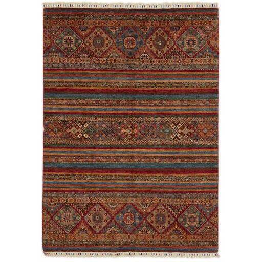 Les tapis de la collection Shall sont noués à la main par des Turkmènes dans le nord de l'Afghanistan. Ils sont fabriqués à 100 % en laine, noués avec la laine la plus fine des moutons des hautes terres. Les tapis sont très résistants et sont, en termes de qualité, les meilleurs tapis afghans disponibles.