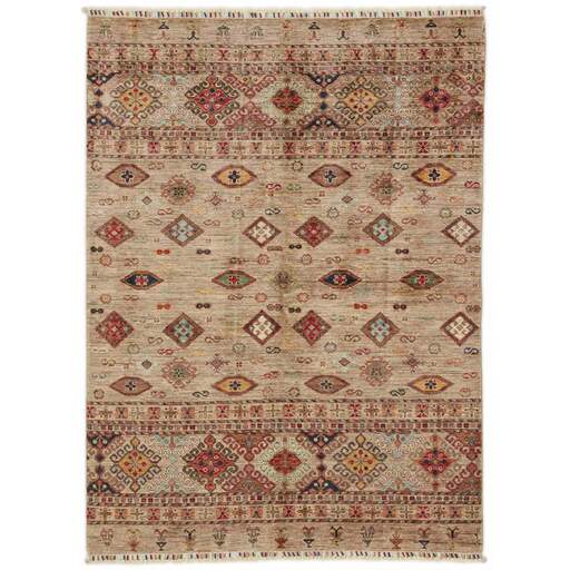 Les tapis de la collection Shall sont noués à la main par des Turkmènes dans le nord de l'Afghanistan. Ils sont fabriqués à 100 % en laine, noués avec la laine la plus fine des moutons des hautes terres. Les tapis sont très résistants et sont, en termes de qualité, les meilleurs tapis afghans disponibles.