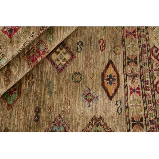 Les tapis de la collection Shall sont noués à la main par des Turkmènes dans le nord de l'Afghanistan. Ils sont fabriqués à 100 % en laine, noués avec la laine la plus fine des moutons des hautes terres. Les tapis sont très résistants et sont, en termes de qualité, les meilleurs tapis afghans disponibles.