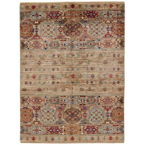 Les tapis de la collection Shall sont noués à la main par des Turkmènes dans le nord de l'Afghanistan. Ils sont fabriqués à 100 % en laine, noués avec la laine la plus fine des moutons des hautes terres. Les tapis sont très résistants et sont, en termes de qualité, les meilleurs tapis afghans disponibles.
