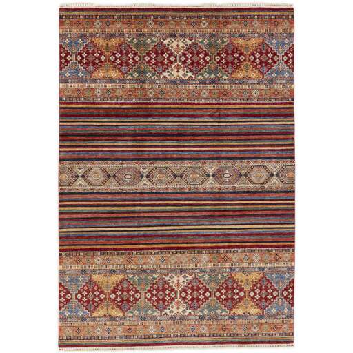 Les tapis de la collection Shall sont noués à la main par des Turkmènes dans le nord de l'Afghanistan. Ils sont fabriqués à 100 % en laine, noués avec la laine la plus fine des moutons des hautes terres. Les tapis sont très résistants et sont, en termes de qualité, les meilleurs tapis afghans disponibles.