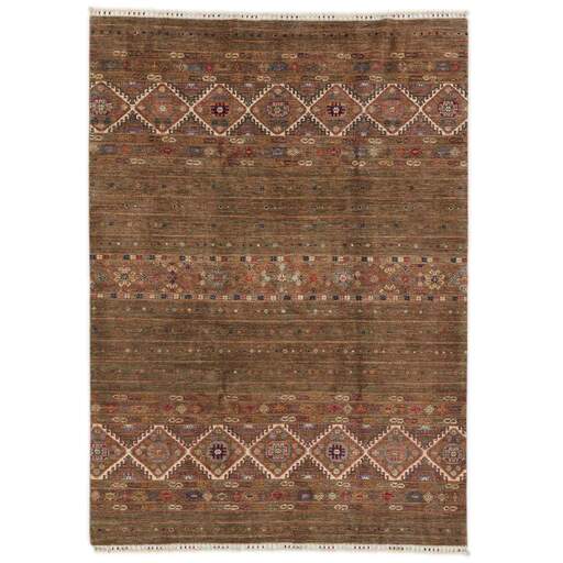 Les tapis de la collection Shall sont noués à la main par des Turkmènes dans le nord de l'Afghanistan. Ils sont fabriqués à 100 % en laine, noués avec la laine la plus fine des moutons des hautes terres. Les tapis sont très résistants et sont, en termes de qualité, les meilleurs tapis afghans disponibles.