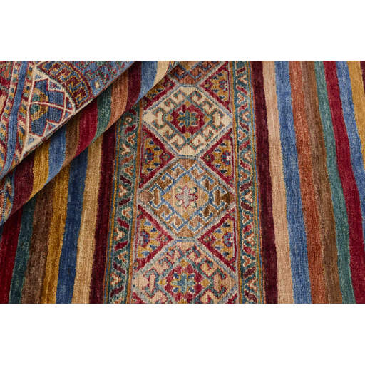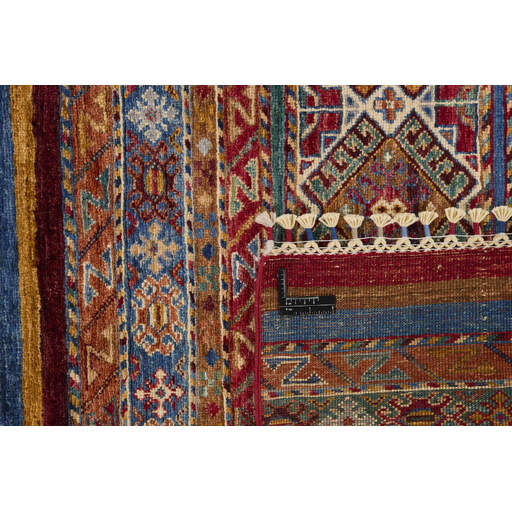 Les tapis de la collection Shall sont noués à la main par des Turkmènes dans le nord de l'Afghanistan. Ils sont fabriqués à 100 % en laine, noués avec la laine la plus fine des moutons des hautes terres. Les tapis sont très résistants et sont, en termes de qualité, les meilleurs tapis afghans disponibles.