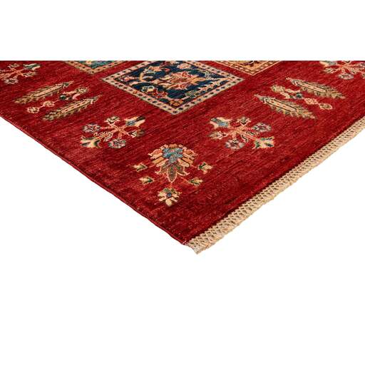 Les tapis de la collection Shall sont noués à la main par des Turkmènes dans le nord de l'Afghanistan. Ils sont fabriqués à 100 % en laine, noués avec la laine la plus fine des moutons des hautes terres. Les tapis sont très résistants et sont, en termes de qualité, les meilleurs tapis afghans disponibles.