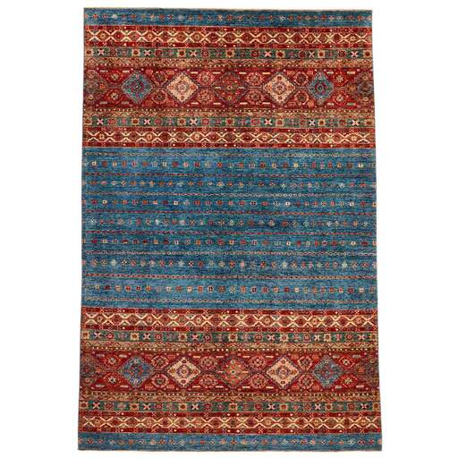 Les tapis de la collection Shall sont noués à la main par des Turkmènes dans le nord de l'Afghanistan. Ils sont fabriqués à 100 % en laine, noués avec la laine la plus fine des moutons des hautes terres. Les tapis sont très résistants et sont, en termes de qualité, les meilleurs tapis afghans disponibles.