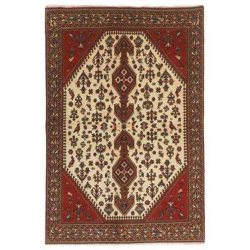 Abadeh is an oasis village of about 50.000 people, situated in the northern part of the Fars province, roughly midway between Shiraz and Isfahan. It has no significant monuments but its location on the northern side of the Zagros Mountains, close to the caravan and nomad routes, has made the inhabitants susceptible to outside influence. This can be seen in the rugs produced in the city. The most famous Abadeh pattern is found in the rugs of the Kashghai tribe; a very pure style flower motif in centre of the rug, repeated in every corner. Other patterns, although rarely seen today, include the Zil-e-Sultan pattern, consisting of flowers, vases, and a couple of birds – a pattern of small bands, running the length of the rug. The dominant colours are red, dark blue, and white. The pile is always wool, while the warp and weft are cotton.