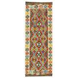 Afghan Kelim rugs are hand woven by Turkmens in northern Afghanistan. Kelim is the name of a common Persian weave, but also of the technology used in the production. Kelims are primarily produced by nomads and are pile-less rugs, which are also used for bags, as wall decoration, or as curtains for tents. A natural colour scale with geometrical symbols and octagons is used.