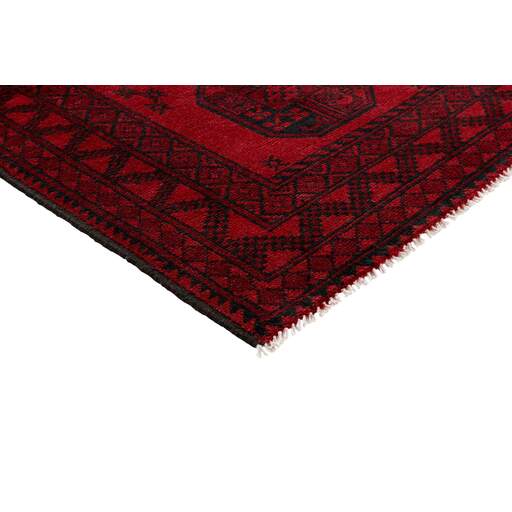 Aktscha rugs are knotted by Turkmens in the Aktscha (Acqcha) district, which is situated in the central part of the Jowzjan Province of northern Afghanistan. The Aktscha rugs are very similar to the Old Afghan (Khal Mohammadi) rugs, but are of a lower quality, as the knot density is lower. The rugs have the same characteristics, with the deep, warm, and fiery red base colour, the relatively high and sturdy pile, the wool base weave, and the use of goat’s and horse’s hair. The Gül (Elephant’s Foot) pattern is the primary pattern of the Aktscha rugs.
