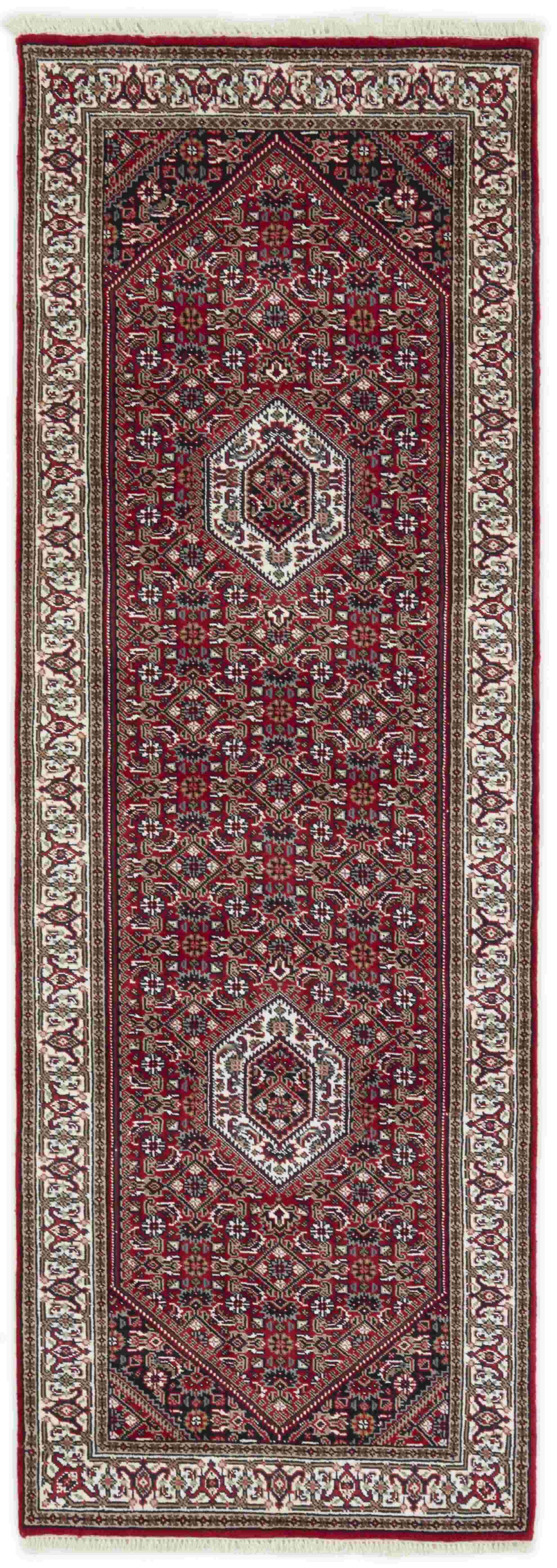 Bidjar Royals are classical hand knotted rugs from India, with designs inspired by the original Persian Bidjar rugs. The colours are red and the patterns are hexagonal, often with a large central medallion surrounded by two other hexagons. The trimmings are decorated with rosettes and flowers. There is some difference in quality between Royals and Indis, but it is not easily observable.