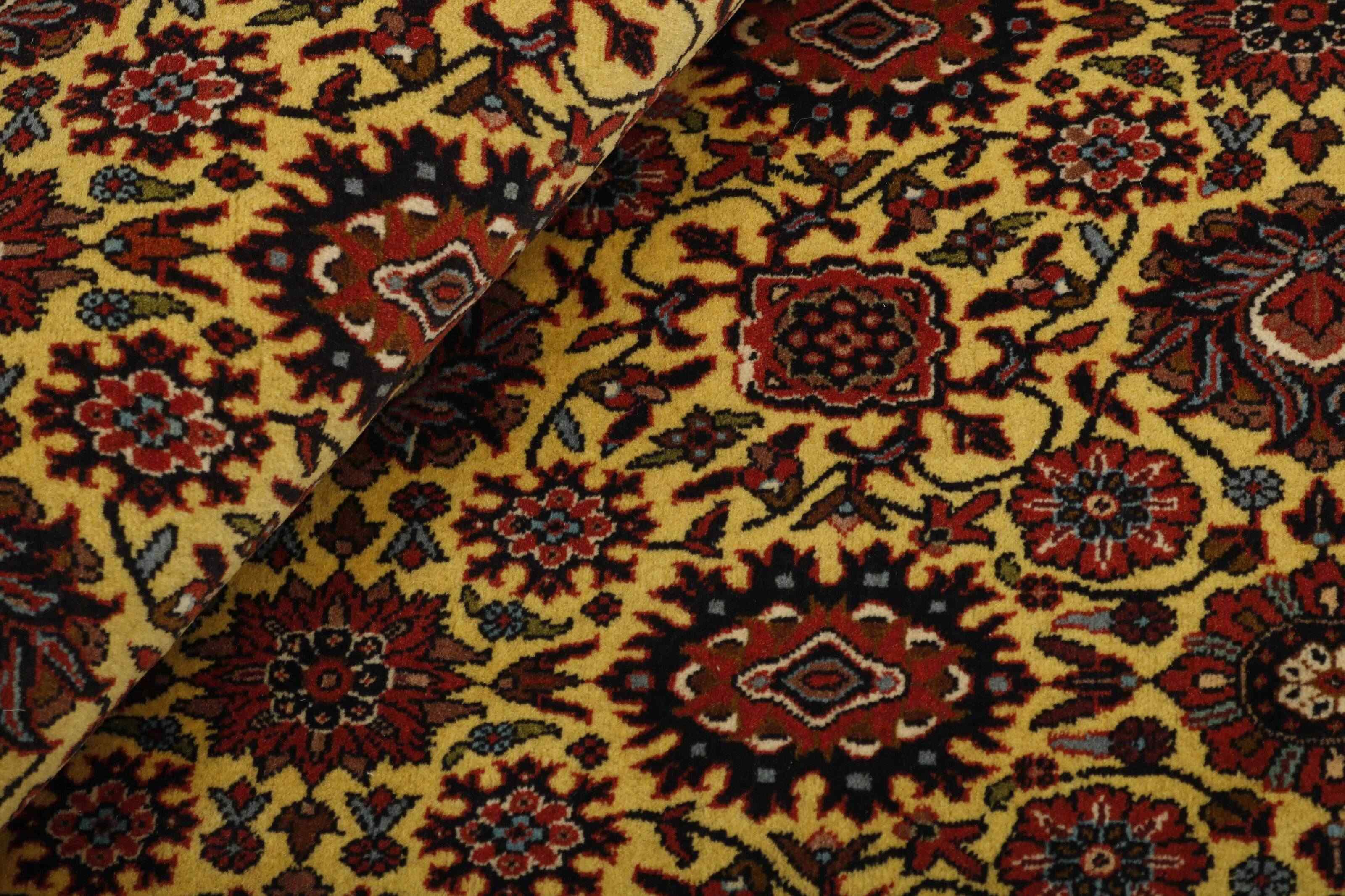 Bidjar is a city of about 50.000 people in the north-western province of Kurdistan. It lies in a fertile valley surrounded by arid mountains, and there are no significant monuments. The city serves primarily as a market centre for the surrounding villages. Its recent history is dramatic, as the city was occupied first by the Russians and then by the Turks, during the First World War, leading to a famine that significantly reduced the population. These events are mirrored in the city’s rug production. Before the First World War, the rugs were coarsely yet firmly knotted, with wool warp and weft. Later, they became finer and had cotton bases. The Bidjar patterns are often Herati, but sometimes a Mahi pattern can be seen. The colours are usually clear reds with a light trimming. The Bidjar rugs are so strongly knotted that you risk breaking the knots if you fold them together with the pile facing inwards. When folding Bidjar rugs, it is therefore always with the pile facing outwards. You can clearly feel that much more wool is used in a Bidjar rug than in most other rugs. They feel a lot heavier and they are not as easy to move around when lying on the floor.