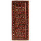 The city and the district of Hamadan is an important centre for the rug trade, as well as the most productive rug production area of Iran. Hamadan is a major city with hundreds of thousands of people. Like Ekbatan, it was a main city of the Achemenian kings. It has an indigenous Jewish population and numerous monuments, of which the most important are the tombs of Esther and Mordicai (central to Jewish pilgrims), and the tomb at Avicenna. Hamadan is a provincial capitol. Two types of rugs are knotted. One is the so-called “city rug”, also known as the Shahrbaff. The production is modern and largely state controlled. The village production, however, is much more important; Hamadan is a market city for many rug producing villages that each has its own pattern. Most prominent are Borchalu, Tuserkman, Memraban, Khamseh, Begardeh, Enjilas, Hosseinabad, and Zandjan. There is a wide range of patterns but the quality is very consistent. The colours are strong, and often plant colours. The patterns are daring, although random, and Hosseinabad and Enjilas in particular are known for through going patterns. The rugs are usually not much bigger than 3 by 2 metres. Hosseinabad belongs to the large Hamadan District, where most rugs are knotted by nomads. The city of Hamadan is the market for more than a thousand villages, which is one of the reasons why there is such a large degree of variation in the patterns o reasons why there is such a large degree of variation in the patterns of the rugs that bear the Hamadan name. The Hosseinabad rug is often, and rightly so, described as good, solid rug for everyday use. It is knotted on a cotton weave base and the pile is made of sturdy wool. The Ghiordis knot is used and the ground colour can be brown, a popular colour in Hamadan rugs. These modern hand knotted rugs are a part of the \"Young Attitude Collection\", and they are knotted in the district around Bhadohi in India. The rugs are produced in contemporary, environmental friendly and ethically correct workshops, with no child w orkers employed. The rugs are carefully selected and developed to harmonize the Scandinavian style of high quality workmanship.