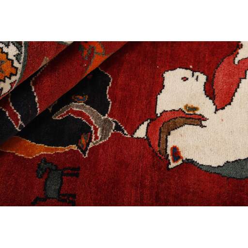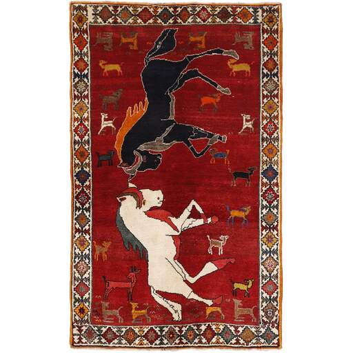 The Kashghai are Iran’s largest and most well known tribe. They speak a Turkish dialect, and are believed to have come from the Caucasus in the 18th century to their current areas, around Shiraz in the Fars Province of southern Iran. Their belligerent attitude has lead to conflicts with changing governments, as well as other tribes in the area. Both their rugs and the women’s clothing clearly show their skills and love of colours. Many subtribes exist, the most important ones being the Bilvedi, the Shishbouki, the Darashuri, and the Kashkuli. The Kashghai knot numerous types of rugs, but a characteristic product can be distinguished by its wool construction, the sturdy ridges on the back, its strong, deep colours (especially the red), as well as by the use of traditional motifs such as Harshang or the crab. The patterns are geometrical, typically with three or five medallions along the centre of the rug or in the middle and corners. The entire field is usually covered in small geometrical motifs. Persepolis motifs can often be found in the rugs. The Kashghai are also famous for their older crafts, such as horse blankets, saddlebags, and rope. The products of other tribes, such as the Kamseh and the Lori, are often mistaken for those of the Kashghai.