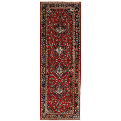 Keshan has always been famed for its handicrafts. The villages lie on the main road between Ghom and Isfahan in central Iran. To the East, the region borders Iran\'s largest desert. Despite the decline of this particular handicraft during the 20th century, many beautiful Keshan rugs are still being produced in accordance with the traditions of the old masters, e.g. decorated with the beautiful medallion patterns or tapestry featuring human and animal motifs. The patterns are most commonly woven around a medallion in the centre of the rug, some of which are repeated in the corners. The other fields are densely decorated with realistic flowers and vines. The main border often features the \"Herati\" motif (an arched leaf), while the secondary borders feature rosettes. Brick red and dark blue are the most common base colours. Keshan is a city of about 300.000 people, situated in the Isfahan province in central Iran. It is rather low lying, and it gets very hot in summer. Traditionally, people have sought to alleviate this by building the houses into the ground. Keshan produces both wool and silk rugs. The first have a cotton warp and weft, the weft being blue. Several qualities are produced, but most Keshan rugs are very finely knotted and all covering. The shape of a Keshan medallion is quite special; it is made by alternating curved lines and right angles. The most common colours are a red field and a blue medallion, with secondary details in other colours. The trimmings of a Keshan rug are also special; the main trimming is normally surrounded by stripes that form a geometrical pattern, usually small blue and red triangles. Keshan rugs come in all sizes. The south-eastern city of Natanez has laid name to image rugs done in the same knotting as Keshans.