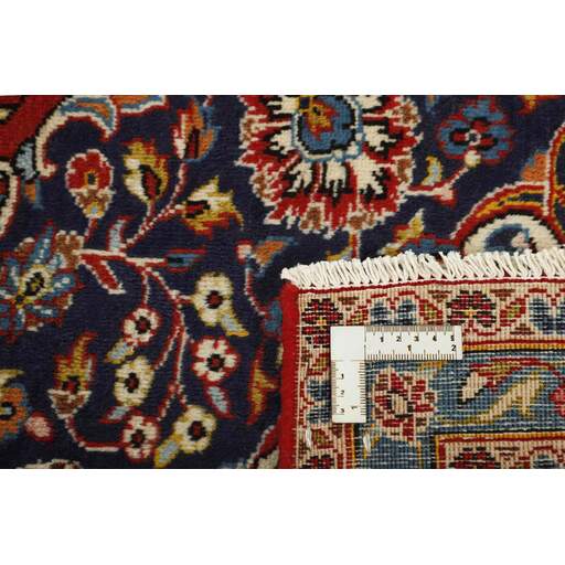 Keshan has always been famed for its handicrafts. The villages lie on the main road between Ghom and Isfahan in central Iran. To the East, the region borders Iran\'s largest desert. Despite the decline of this particular handicraft during the 20th century, many beautiful Keshan rugs are still being produced in accordance with the traditions of the old masters, e.g. decorated with the beautiful medallion patterns or tapestry featuring human and animal motifs. The patterns are most commonly woven around a medallion in the centre of the rug, some of which are repeated in the corners. The other fields are densely decorated with realistic flowers and vines. The main border often features the \"Herati\" motif (an arched leaf), while the secondary borders feature rosettes. Brick red and dark blue are the most common base colours. Keshan is a city of about 300.000 people, situated in the Isfahan province in central Iran. It is rather low lying, and it gets very hot in summer. Traditionally, people have sought to alleviate this by building the houses into the ground. Keshan produces both wool and silk rugs. The first have a cotton warp and weft, the weft being blue. Several qualities are produced, but most Keshan rugs are very finely knotted and all covering. The shape of a Keshan medallion is quite special; it is made by alternating curved lines and right angles. The most common colours are a red field and a blue medallion, with secondary details in other colours. The trimmings of a Keshan rug are also special; the main trimming is normally surrounded by stripes that form a geometrical pattern, usually small blue and red triangles. Keshan rugs come in all sizes. The south-eastern city of Natanez has laid name to image rugs done in the same knotting as Keshans.