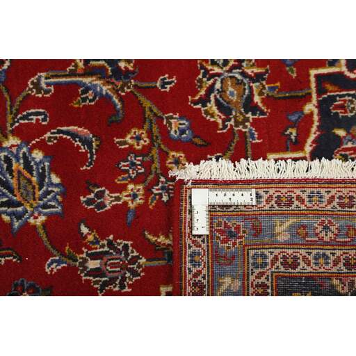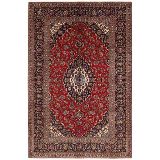 Keshan has always been famed for its handicrafts. The villages lie on the main road between Ghom and Isfahan in central Iran. To the East, the region borders Iran\'s largest desert. Despite the decline of this particular handicraft during the 20th century, many beautiful Keshan rugs are still being produced in accordance with the traditions of the old masters, e.g. decorated with the beautiful medallion patterns or tapestry featuring human and animal motifs. The patterns are most commonly woven around a medallion in the centre of the rug, some of which are repeated in the corners. The other fields are densely decorated with realistic flowers and vines. The main border often features the \"Herati\" motif (an arched leaf), while the secondary borders feature rosettes. Brick red and dark blue are the most common base colours. Keshan is a city of about 300.000 people, situated in the Isfahan province in central Iran. It is rather low lying, and it gets very hot in summer. Traditionally, people have sought to alleviate this by building the houses into the ground. Keshan produces both wool and silk rugs. The first have a cotton warp and weft, the weft being blue. Several qualities are produced, but most Keshan rugs are very finely knotted and all covering. The shape of a Keshan medallion is quite special; it is made by alternating curved lines and right angles. The most common colours are a red field and a blue medallion, with secondary details in other colours. The trimmings of a Keshan rug are also special; the main trimming is normally surrounded by stripes that form a geometrical pattern, usually small blue and red triangles. Keshan rugs come in all sizes. The south-eastern city of Natanez has laid name to image rugs done in the same knotting as Keshans.