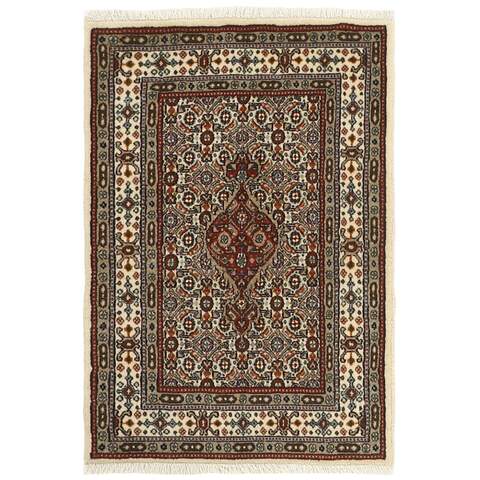 Moud is a small town south of Mashad, in the Khorrasan Province. Rugs from this area are characterised by homogeneity in patterns and quality. Warp and weft are cotton and the pile is wool. The trimmings are a version of the traditional Persian turtle trimming. The rugs are produced in all sizes. Moud rugs are often copied in India, because of their remarkable homogeneity. The characteristic Moud designs are among the most uniform, evenly knotted, and easily recognisable designs of the Khorrasan Province. Moud Mahi are made in a beige, light red, or blue tone, with all-over Mahi patterns or with a star shaped medallion. Mahi means fish, and the Mahi pattern is the most commonly used pattern in genuine Persian rugs. When looking at it closely, you can see a pond encircled by four fish.