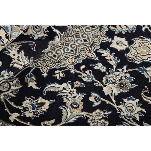 Nain is a city of about 50.000 people, located in the Isfahan Province. It has historic significance, since it was the last stop on caravan routes before Kavir-a-Lut, one of the deserts that stretch through the centre of Iran. The Nain Mosque is one of Iran’s oldest, and is built far better than the later and more famous mosques of Isfahan. The industry in Nain was traditionally focused on the production of wool garments, but the weavers switched to rug production when the demand fell. Their new products soon became famous, as the weavers were skilled and used good quality materials. The warp and weft are cotton, with a wool pile and contours of silk. Sometimes, silk is used more in the base. The colours are refined; nuances of ivory and cream, with small areas of red, green, and blue. As with the rugs from Isfahan, the patterns of the Nain rugs are also classical. The Nain rugs are made in all sizes, including the very large of up to 60m2, and some of these have a pure silk pile. The largest Nain rug produced was 20 by 20 metres. These modern hand knotted rugs are a part of the \"Young Attitude Collection\", and they are knotted in the district around Bhadohi in India. The rugs are produced in contemporary, environmental friendly and ethically correct workshops, with no child w orkers employed. The rugs are carefully selected and developed to harmonize the Scandinavian style of high quality workmanship.