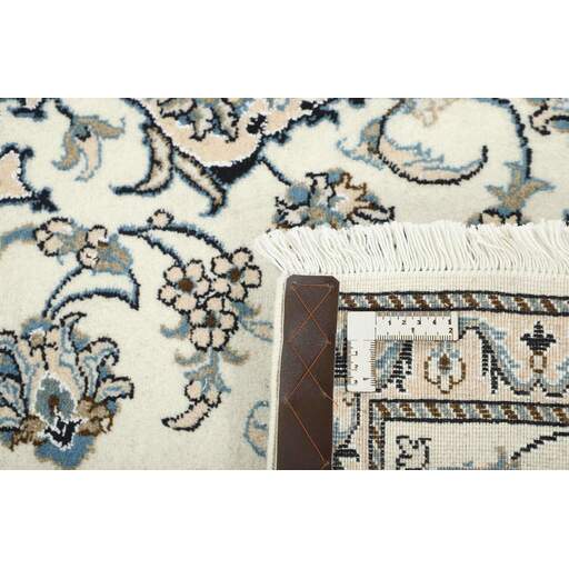Nain is a city of about 50.000 people, located in the Isfahan Province. It has historic significance, since it was the last stop on caravan routes before Kavir-a-Lut, one of the deserts that stretch through the centre of Iran. The Nain Mosque is one of Iran’s oldest, and is built far better than the later and more famous mosques of Isfahan. The industry in Nain was traditionally focused on the production of wool garments, but the weavers switched to rug production when the demand fell. Their new products soon became famous, as the weavers were skilled and used good quality materials. The warp and weft are cotton, with a wool pile and contours of silk. Sometimes, silk is used more in the base. The colours are refined; nuances of ivory and cream, with small areas of red, green, and blue. As with the rugs from Isfahan, the patterns of the Nain rugs are also classical. The Nain rugs are made in all sizes, including the very large of up to 60m2, and some of these have a pure silk pile. The largest Nain rug produced was 20 by 20 metres.