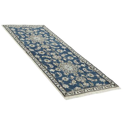 Nain is a city of about 50.000 people, located in the Isfahan Province. It has historic significance, since it was the last stop on caravan routes before Kavir-a-Lut, one of the deserts that stretch through the centre of Iran. The Nain Mosque is one of Iran’s oldest, and is built far better than the later and more famous mosques of Isfahan. The industry in Nain was traditionally focused on the production of wool garments, but the weavers switched to rug production when the demand fell. Their new products soon became famous, as the weavers were skilled and used good quality materials. The warp and weft are cotton, with a wool pile and contours of silk. Sometimes, silk is used more in the base. The colours are refined; nuances of ivory and cream, with small areas of red, green, and blue. As with the rugs from Isfahan, the patterns of the Nain rugs are also classical. The Nain rugs are made in all sizes, including the very large of up to 60m2, and some of these have a pure silk pile. The largest Nain rug produced was 20 by 20 metres.