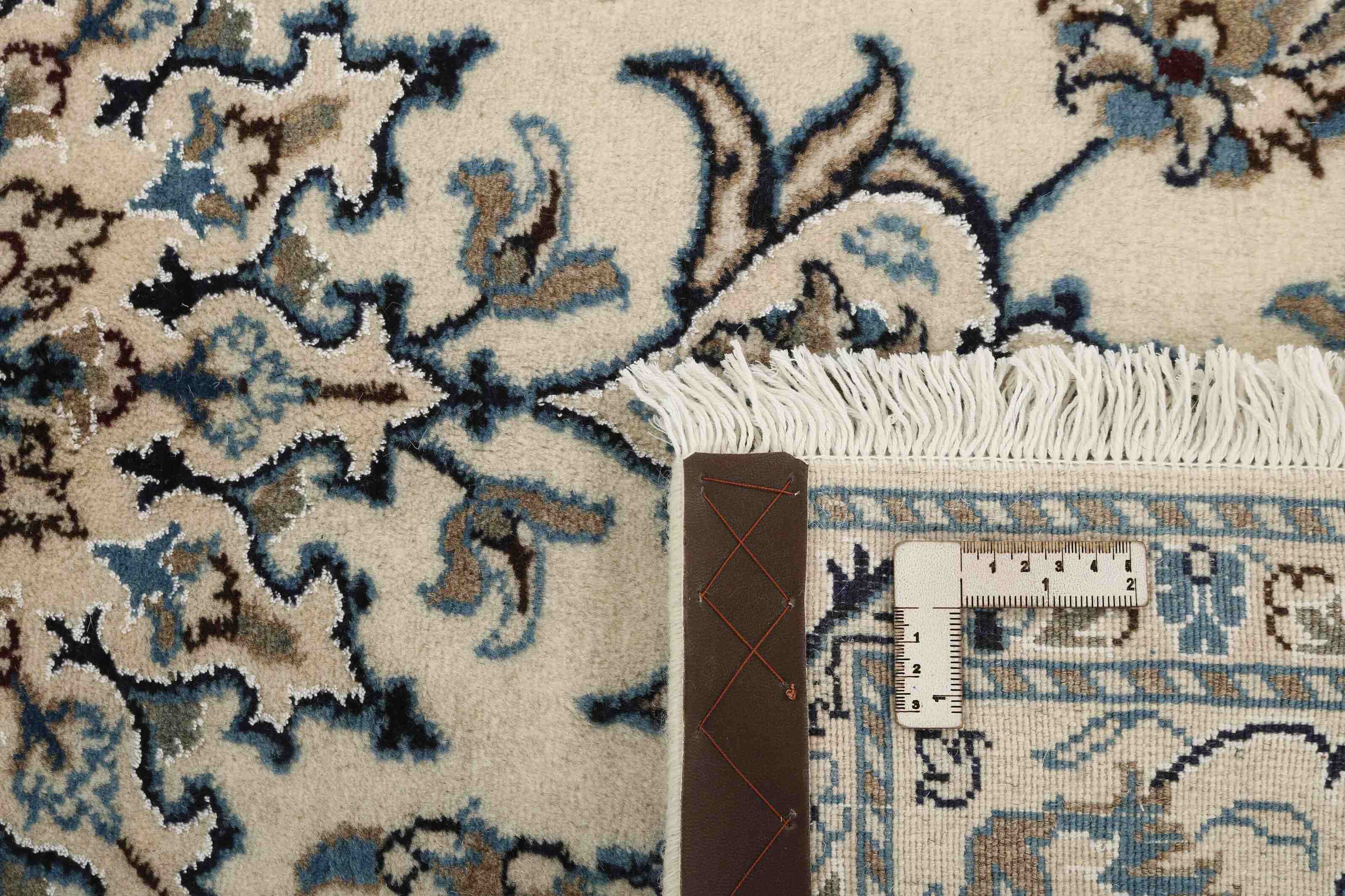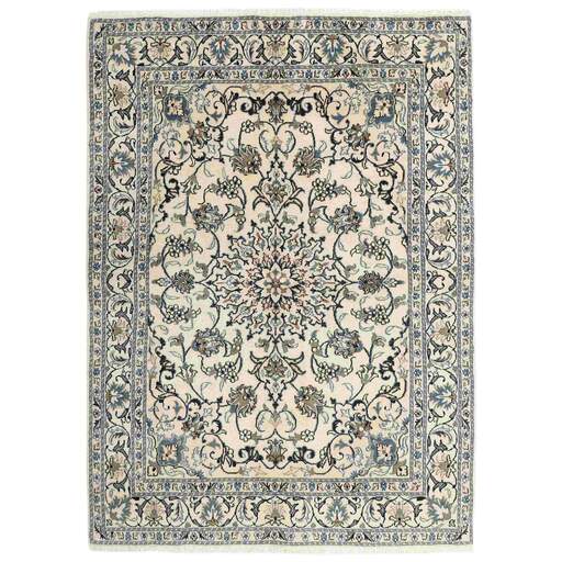 Nain is a city of about 50.000 people, located in the Isfahan Province. It has historic significance, since it was the last stop on caravan routes before Kavir-a-Lut, one of the deserts that stretch through the centre of Iran. The Nain Mosque is one of Iran’s oldest, and is built far better than the later and more famous mosques of Isfahan. The industry in Nain was traditionally focused on the production of wool garments, but the weavers switched to rug production when the demand fell. Their new products soon became famous, as the weavers were skilled and used good quality materials. The warp and weft are cotton, with a wool pile and contours of silk. Sometimes, silk is used more in the base. The colours are refined; nuances of ivory and cream, with small areas of red, green, and blue. As with the rugs from Isfahan, the patterns of the Nain rugs are also classical. The Nain rugs are made in all sizes, including the very large of up to 60m2, and some of these have a pure silk pile. The largest Nain rug produced was 20 by 20 metres.