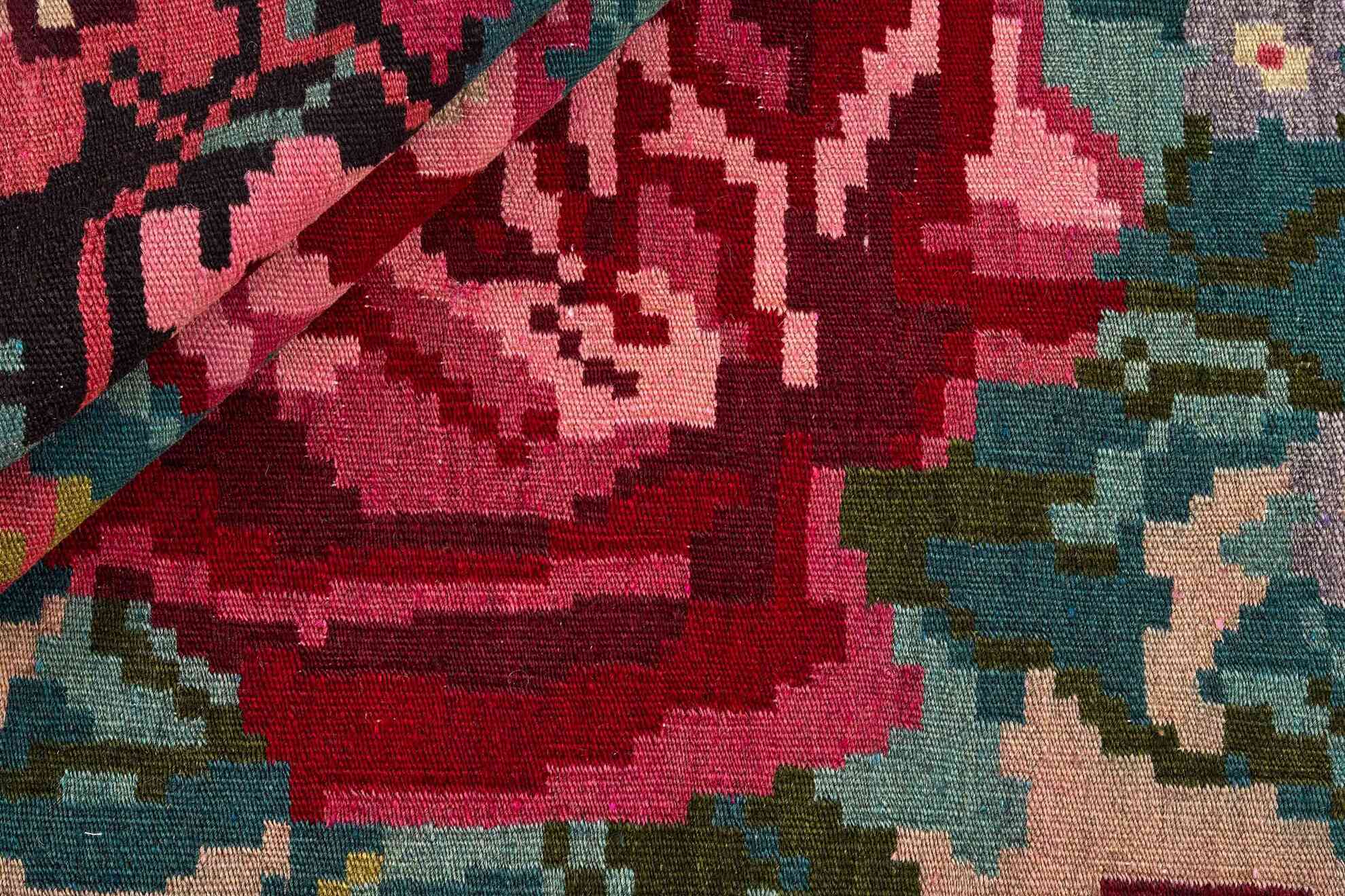 Rose Kelims are produced in Moldavia and northern Turkey. Rose Kelims are woven using a special weaving technique, giving the rugs a thinner, felt-like quality. Rose Kelim are older rugs and can easily be up to 50 years old. They are relatively rare and are hard to get hold of. The motifs are typically very flowered, in strong colours on a dark background.