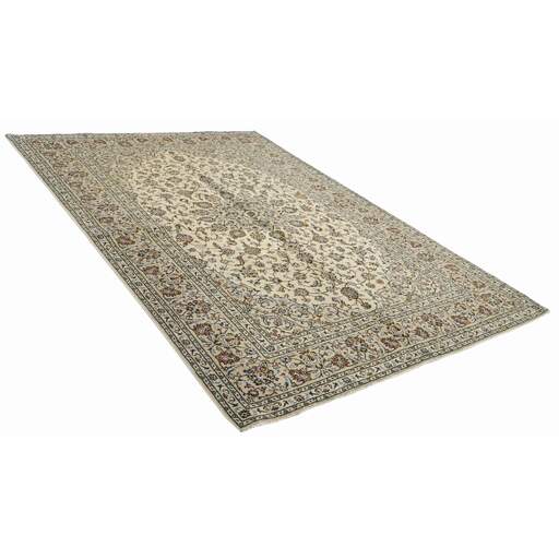 Keshan has always been famed for its handicrafts. The villages lie on the main road between Ghom and Isfahan in central Iran. To the East, the region borders Iran\'s largest desert. Despite the decline of this particular handicraft during the 20th century, many beautiful Keshan rugs are still being produced in accordance with the traditions of the old masters, e.g. decorated with the beautiful medallion patterns or tapestry featuring human and animal motifs. The patterns are most commonly woven around a medallion in the centre of the rug, some of which are repeated in the corners. The other fields are densely decorated with realistic flowers and vines.