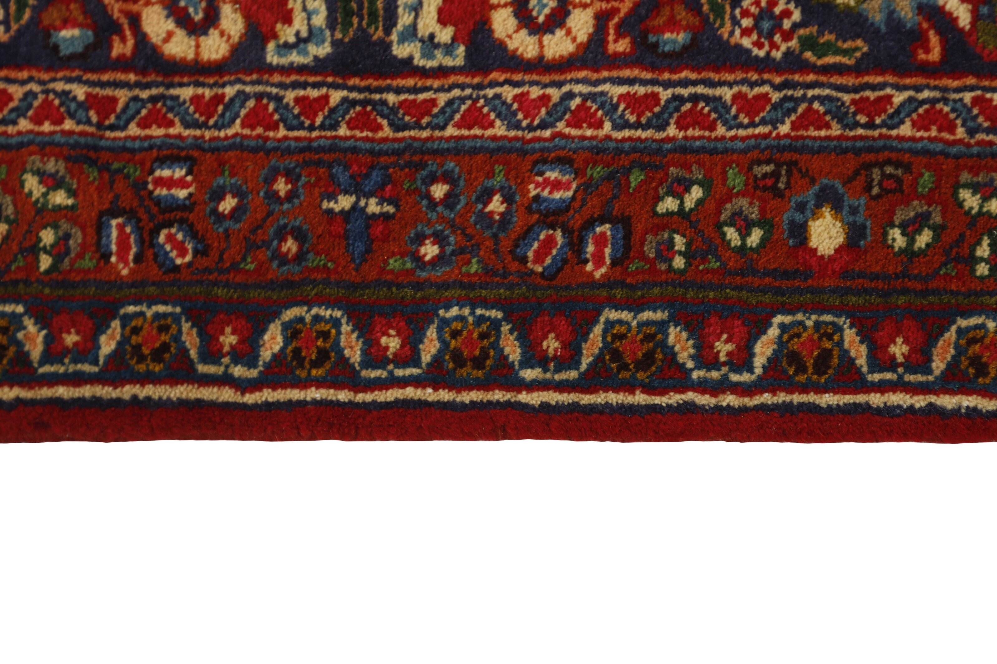 In the eastern part of Iran, close to Turkmenistan, in the large area named Khorassan, the city Mashad is situated. This city is an important centre for trading village and nomad rugs. The colours is dark and rich, the ground is often filled with flower motifs, surrounded by traditional Persian borders in different sizes. Mashad is the second most popular city in Iran and is the capitol of the Razavi Khorasan province. Mashad is situated in the north-eastern part of Iran, close to the border with Afghanistan and Turkmenistan. Although Mashad is now situated close to the border, it used to be more central when the Persian Empire stretched further East. It was part of a network of cities that stretched into Central Asia: Merv, Tashkent, Samarkand and Herat. It is also among the oldest known centres for rug knotting. The rug production is extensive in Mashad and mostly big rugs with medallions are produced. Mashad rugs are also sold under the name Meshed. The city of Mashad is known for producing some of the finest wool in Iran. The rugs are of a very high quality and are among the most beautiful rugs in [Iran and] the world. The colours are often red, while the ground colour can be blue purple with a cream coloured pattern. Often, the Mashad rugs have a harmonic middle medallion and large corner motifs. The base of the rug is plentifully decorated with varicoloured flower bouquets and leaves. Numerous borders, consisting of a broad main border after the finest Iranian tradition, frame the entire rug.