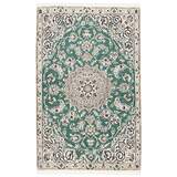 Nain is a city of about 50.000 people, located in the Isfahan Province. It has historic significance, since it was the last stop on caravan routes before Kavir-a-Lut, one of the deserts that stretch through the centre of Iran. The Nain Mosque is one of Iran’s oldest, and is built far better than the later and more famous mosques of Isfahan. The industry in Nain was traditionally focused on the production of wool garments, but the weavers switched to rug production when the demand fell. Their new products soon became famous, as the weavers were skilled and used good quality materials. The warp and weft are cotton, with a wool pile and contours of silk. Sometimes, silk is used more in the base. The colours are refined; nuances of ivory and cream, with small areas of red, green, and blue. As with the rugs from Isfahan, the patterns of the Nain rugs are also classical. The Nain rugs are made in all sizes, including the very large of up to 60m2, and some of these have a pure silk pile. The largest Nain rug produced was 20 by 20 metres. These modern hand knotted rugs are a part of the \"Young Attitude Collection\", and they are knotted in the district around Bhadohi in India. The rugs are produced in contemporary, environmental friendly and ethically correct workshops, with no child w orkers employed. The rugs are carefully selected and developed to harmonize the Scandinavian style of high quality workmanship.