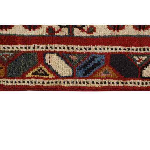Shiraz, with a population of about one million, is the capitol of the south-eastern province of Fars, and is situated in the Zargros Mountains. Shiraz is an age-old city, which has been the capitol of Iran several times, and it is known as the city of roses and nightingales. It has a reputation of being very relaxed, with a “ we will get around to that tomorrow”-attitude. Shiraz has laid name to rugs that are knotted in the small towns and villages surrounding it, from where they are brought to the city to be sold. The local tribes like the Kashghai, whose best works are even finer and more densely knotted than those knotted in Shiraz itself, also make them. Shiraz rugs are characterised by a deep claret colour, combined with dark blue and small areas of white and green. The wool is soft, and darker wool, sometimes mixed with goat’s hair, is used for both warp and weft. The patterns are coarse and geometrical, often identical to the Kashghai patterns. Often, small, geometrical birds and animals brighten them up. Shiraz rugs are made in all sizes, although big rugs are rare.