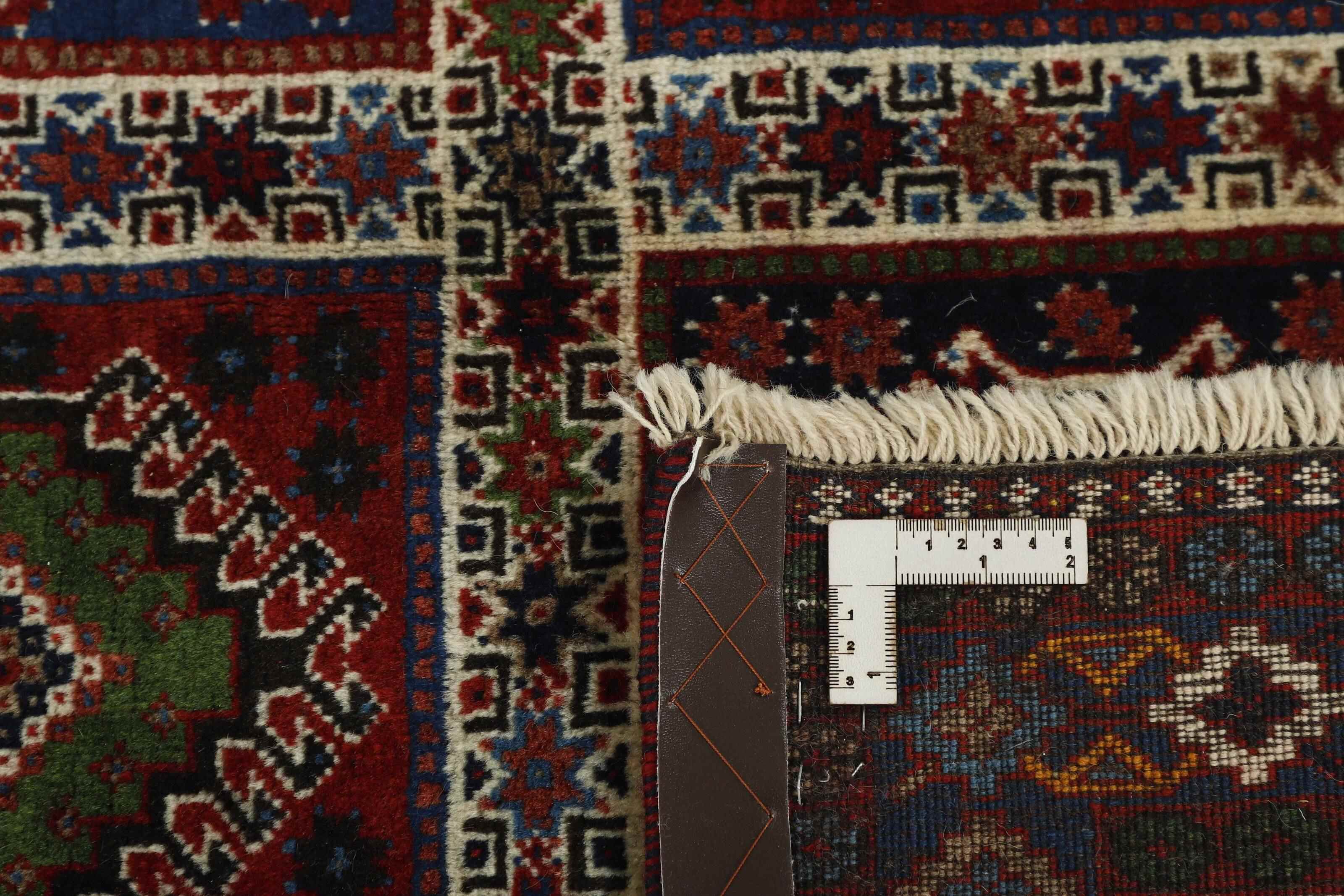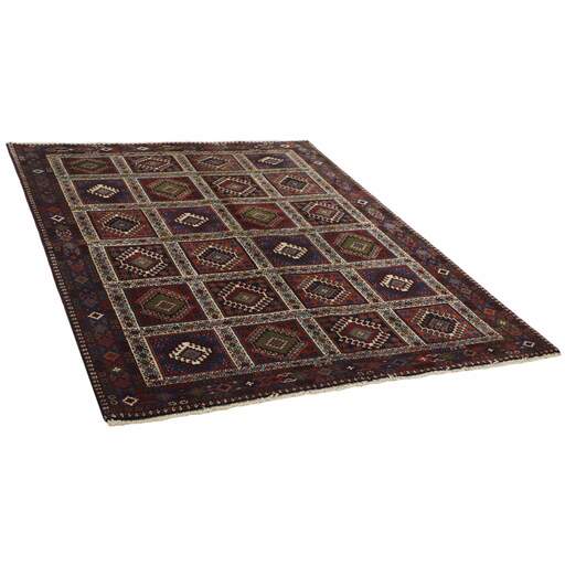 The colourful rugs from southern Iran have been named Yalameh, and are mainly knotted in and around the village of Aliabad in the Fars Province. Rugs of this origin were formerly called Shekarlu, but they were very rare. They were traditionally more colourful than other south Iranian rugs, the colours of which were limited to red and dark blue. In recent years, the supply of Shekarlu has been limited, but a new type of rug entered the market in the 60s and 70s; the Yalameh. These were just as colourful as the Shekarlu rugs, but with a stronger emphasis on blue. The knotting and the patterns are usually more uniform than with the Shekarlu rugs. They share many characteristics with the tribal rugs; they are 100% wool, and bright colours and geometrical patterns are generously used. Although the wool is characteristically soft and shining, it is machine spun, and the colours display a larger degree of variation than normal for tribal rugs, with soft nuances of red, pink, blue, green, and yellow. The motifs, however, are wholly traditional.
