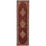 Ce tapis provient du district de Hamadan, un important centre de commerce de tapis et la zone de production de tapis la plus productive d'Iran. Hamadan est une grande ville comptant des centaines de milliers d'habitants. Comme Ekbatan, c'était la principale ville des rois achéménides. Elle abrite une population juive indigène et de nombreux monuments, dont les plus importants sont les tombeaux d'Esther et de Mordicai (au cœur des pèlerins juifs) et le tombeau d'Avicenne. Hamadan est une capitale provinciale. Deux types de tapis sont noués. L'un est le soi-disant « tapis de ville », également connu sous le nom de Shahrbaff. La production est moderne et largement contrôlée par l'État. La production villageoise, cependant, est beaucoup plus importante ; Hamadan est une ville de marché pour de nombreux villages producteurs de tapis qui ont chacun leur propre motif. Les plus importants sont Borchalu, Tuserkman, Memraban, Khamseh, Begardeh, Enjilas, Hosseinabad et Zandjan. Il existe une grande variété de motifs mais la qualité est très constante. Les couleurs sont fortes et souvent des couleurs végétales. Les motifs sont audacieux, bien qu'aléatoires, et Hosseinabad et Enjilas en particulier sont connus pour leurs motifs traversants. Les tapis ne mesurent généralement pas plus de 3 mètres sur 2.