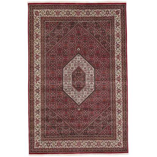 Les tapis Bidjar Royals sont des tapis classiques noués à la main originaires d'Inde, dont les motifs s'inspirent des tapis persans Bidjar originaux. Les couleurs sont rouges et les motifs sont hexagonaux, souvent avec un grand médaillon central entouré de deux autres hexagones. Les garnitures sont décorées de rosaces et de fleurs. Il existe une certaine différence de qualité entre les Royals et les Indis, mais elle n'est pas facilement observable.