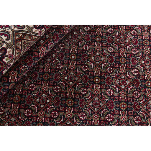 Les tapis Bidjar Royals sont des tapis classiques noués à la main originaires d'Inde, dont les motifs s'inspirent des tapis persans Bidjar originaux. Les couleurs sont rouges et les motifs sont hexagonaux, souvent avec un grand médaillon central entouré de deux autres hexagones. Les garnitures sont décorées de rosaces et de fleurs. Il existe une certaine différence de qualité entre les Royals et les Indis, mais elle n'est pas facilement observable.