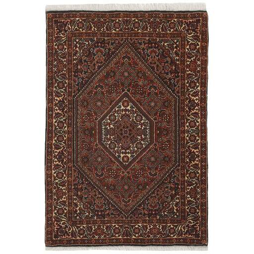 Bidjar est une ville d'environ 50 000 habitants située dans la province du Kurdistan, au nord-ouest du pays. Elle se trouve dans une vallée fertile entourée de montagnes arides et ne possède aucun monument important. La ville sert principalement de centre commercial pour les villages environnants. Son histoire récente est dramatique, car la ville a été occupée d'abord par les Russes, puis par les Turcs, pendant la Première Guerre mondiale, ce qui a entraîné une famine qui a considérablement réduit la population. Ces événements se reflètent dans la production de tapis de la ville. Avant la Première Guerre mondiale, les tapis étaient noués grossièrement mais fermement, avec une chaîne et une trame en laine. Plus tard, ils sont devenus plus fins et avaient des bases en coton. Les motifs Bidjar sont souvent Herati, mais parfois on peut voir un motif Mahi. Les couleurs sont généralement des rouges clairs avec une bordure légère. Les tapis Bidjar sont si fortement noués que vous risquez de casser les nœuds si vous les pliez ensemble avec le poil tourné vers l'intérieur. Lorsque vous pliez les tapis Bidjar, c'est donc toujours avec le poil tourné vers l'extérieur. On sent clairement que la laine utilisée dans un tapis Bidjar est bien plus importante que dans la plupart des autres tapis. Ils sont beaucoup plus lourds et ne sont pas aussi faciles à déplacer lorsqu'ils sont posés sur le sol.