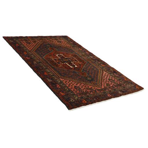 Ce tapis provient du district de Hamadan, un important centre de commerce de tapis et la zone de production de tapis la plus productive d'Iran. Hamadan est une grande ville comptant des centaines de milliers d'habitants. Comme Ekbatan, c'était la principale ville des rois achéménides. Elle abrite une population juive indigène et de nombreux monuments, dont les plus importants sont les tombeaux d'Esther et de Mordicai (au cœur des pèlerins juifs) et le tombeau d'Avicenne. Hamadan est une capitale provinciale. Deux types de tapis sont noués. L'un est le soi-disant « tapis de ville », également connu sous le nom de Shahrbaff. La production est moderne et largement contrôlée par l'État. La production villageoise, cependant, est beaucoup plus importante ; Hamadan est une ville de marché pour de nombreux villages producteurs de tapis qui ont chacun leur propre motif. Les plus importants sont Borchalu, Tuserkman, Memraban, Khamseh, Begardeh, Enjilas, Hosseinabad et Zandjan. Il existe une grande variété de motifs mais la qualité est très constante. Les couleurs sont fortes et souvent des couleurs végétales. Les motifs sont audacieux, bien qu'aléatoires, et Hosseinabad et Enjilas en particulier sont connus pour leurs motifs traversants. Les tapis ne mesurent généralement pas plus de 3 mètres sur 2.