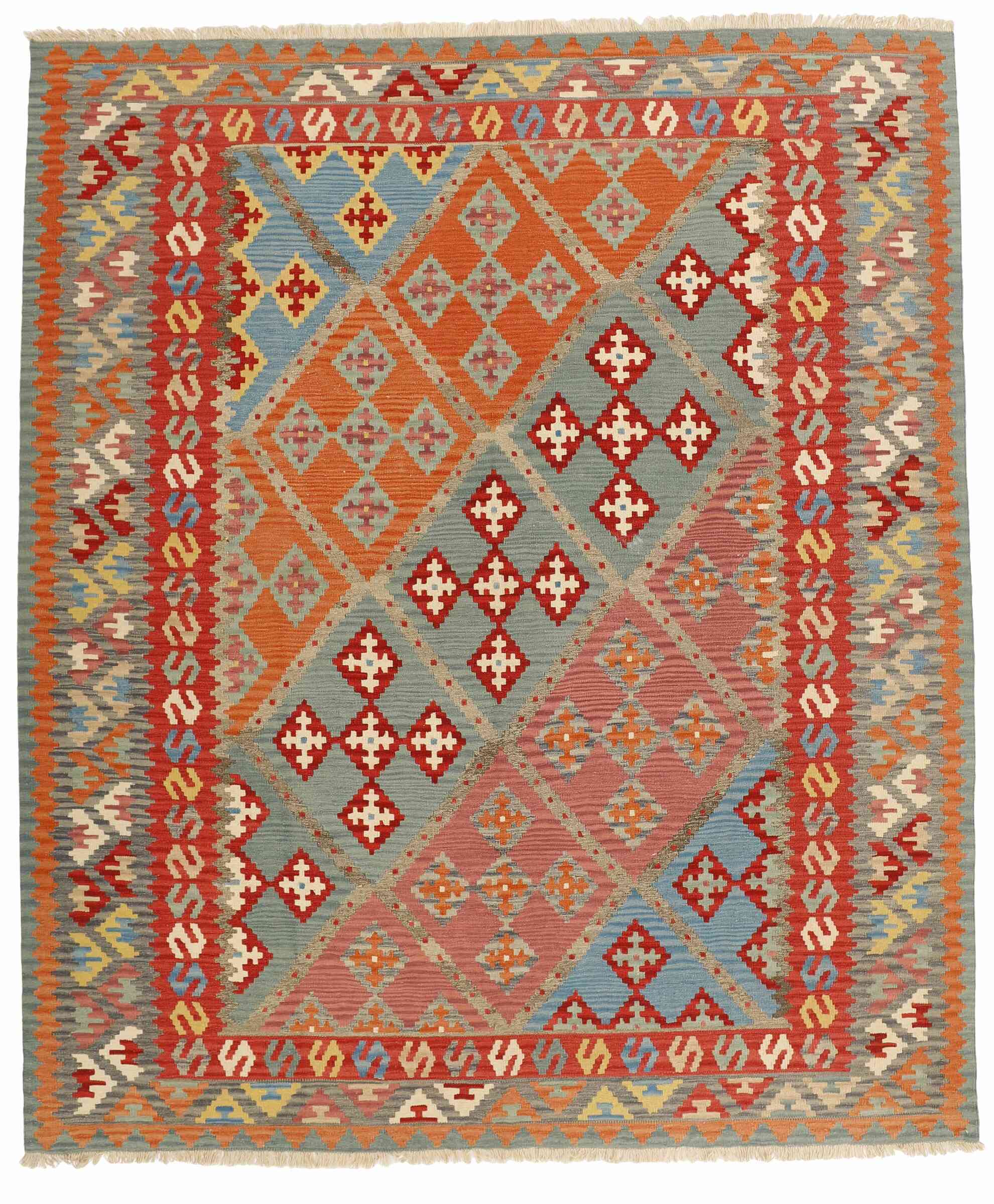 Ces kilims sont des tapis tissés à plat, tissés par les nomades de l'ouest de la Perse. Une technique de tissage spéciale est utilisée, ce qui donne au tapis une surface plus fine et plus plate, sans poils. Les kilims sont également plus rapides à produire que les tapis orientaux courants. Les couleurs sont naturelles et aucun tapis ne se ressemble. Les kilims sont produits dans plusieurs régions et sous de nombreux noms, mais les types de kilim les plus connus sont Seneh, Sumak, Fars et Kelim Gashghai.