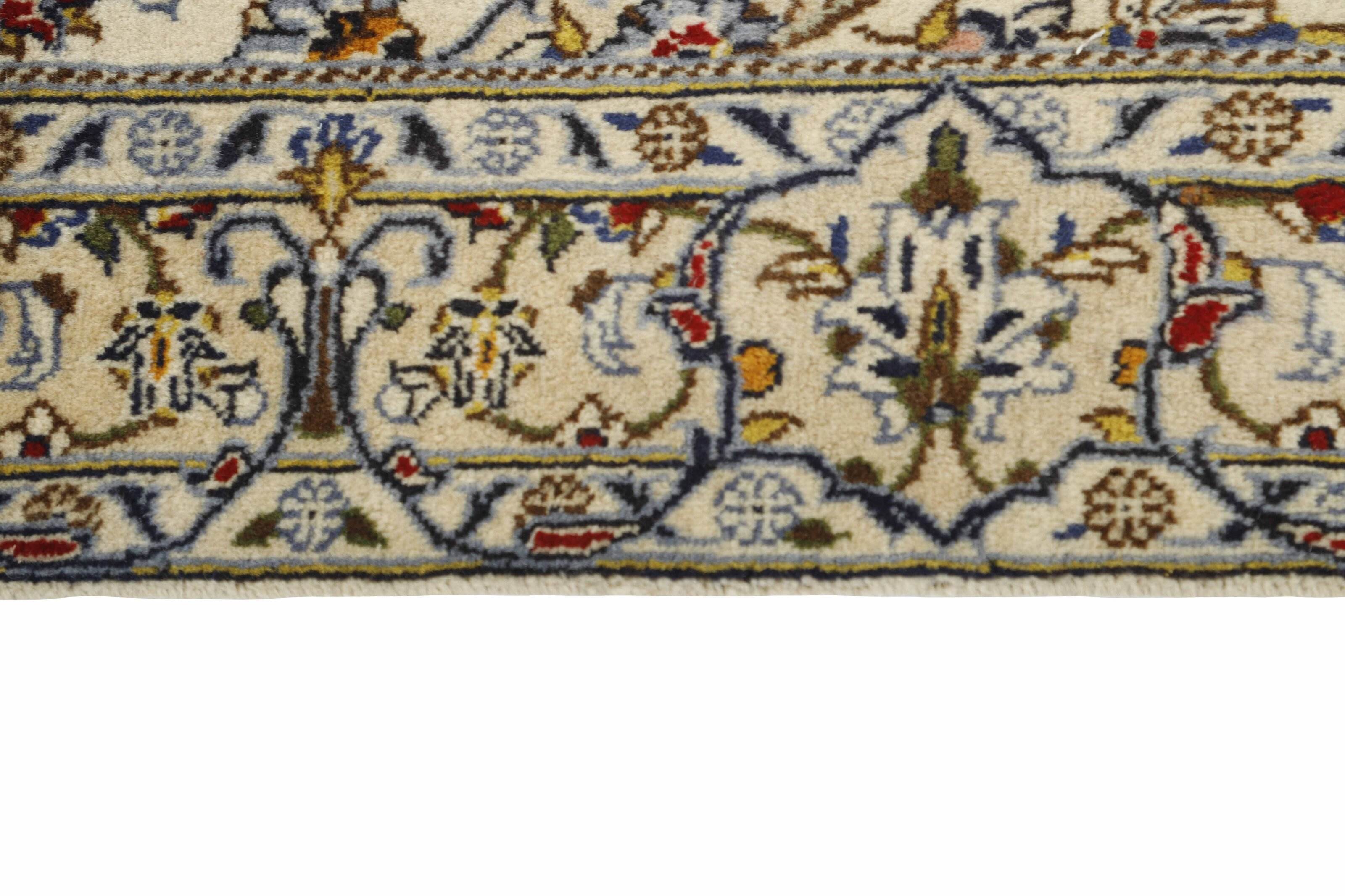 Keshan a toujours été célèbre pour son artisanat. Les villages se situent sur la route principale entre Ghom et Ispahan, dans le centre de l'Iran. À l'est, la région borde le plus grand désert d'Iran. Malgré le déclin de cet artisanat particulier au cours du XXe siècle, de nombreux tapis Keshan magnifiques sont toujours fabriqués conformément aux traditions des anciens maîtres, par exemple décorés de magnifiques motifs en médaillon ou de tapisseries représentant des motifs humains et animaux. Les motifs sont le plus souvent tissés autour d'un médaillon au centre du tapis, dont certains se répètent dans les coins. Les autres champs sont densément décorés de fleurs et de vignes réalistes. La bordure principale présente souvent le motif « Herati » (une feuille arquée), tandis que les bordures secondaires présentent des rosettes. Le rouge brique et le bleu foncé sont les couleurs de base les plus courantes. Keshan est une ville d'environ 300 000 habitants, située dans la province d'Ispahan, dans le centre de l'Iran. Elle est plutôt basse et il fait très chaud en été. Traditionnellement, les gens ont cherché à remédier à ce problème en construisant les maisons dans le sol. Keshan produit des tapis en laine et en soie. Les premiers ont une chaîne et une trame en coton, la trame étant bleue. Plusieurs qualités sont produites, mais la plupart des tapis Keshan sont très finement noués et entièrement couvrants. La forme d'un médaillon Keshan est assez particulière ; elle est faite d'une alternance de lignes courbes et d'angles droits. Les couleurs les plus courantes sont un champ rouge et un médaillon bleu, avec des détails secondaires dans d'autres couleurs. Les garnitures d'un tapis Keshan sont également spéciales ; la garniture principale est normalement entourée de rayures qui forment un motif géométrique, généralement de petits triangles bleus et rouges. Les tapis Keshan existent dans toutes les tailles. La ville de Natanez, au sud-est du pays, a donné son nom à des tapis d'image réalisés avec le même nouage que les Keshan.